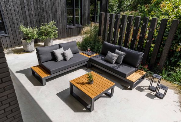Stel je loungeset helemaal zelf samen. Meer zitplek, minder ruimte of extra gemak? Met onze modulaire elementen pas je alles eenvoudig aan jouw buitenruimte aan.